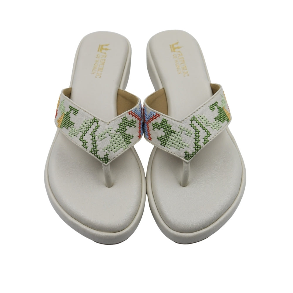 Find your footing in heritage-inspired style. These striking black toe-post sandals feature an exquisitely embroidered strap with a vibrant, geometric cross-stitch pattern that commands a second look. Designed with a soft upper and a gently contoured sole, they offer effortless comfort and enduring elegance for the queen who appreciates intricate artistry.