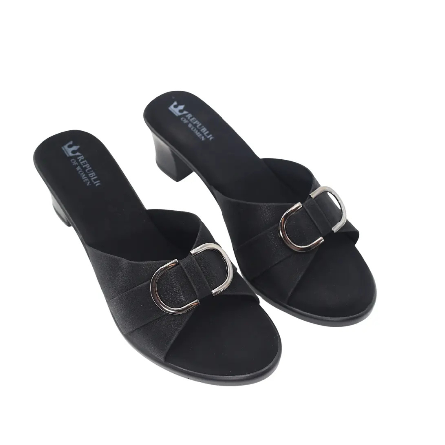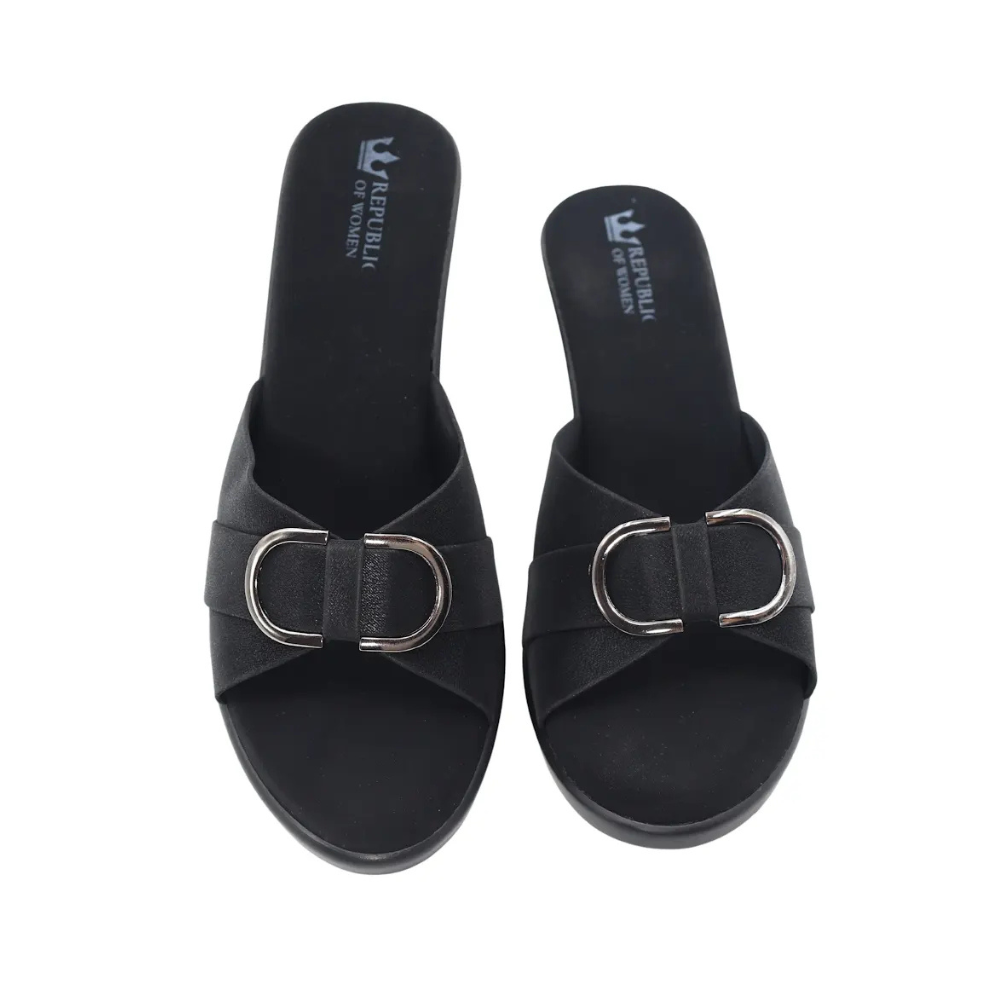 Step out in effortless style with these chic slip-on chappals. The classic black color makes them versatile for any outfit, while the decorative gold-toned ring buckle adds a touch of modern elegance. Perfect for casual comfort or dressing up a simple look.