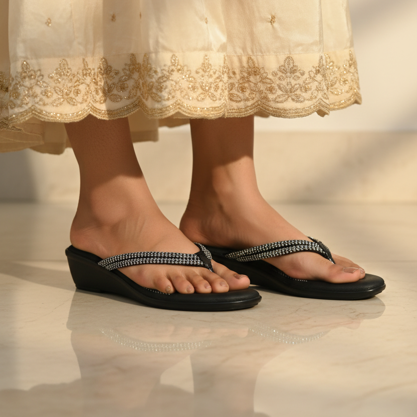 Meet your everyday go-to: Chill Mode. Feather-light, fuss-free, and seriously comfy, this black slip-on chappal keeps it simple, stylish, and super practical. Perfect for errands, lounging, and casual walks when you just want ease without effort.