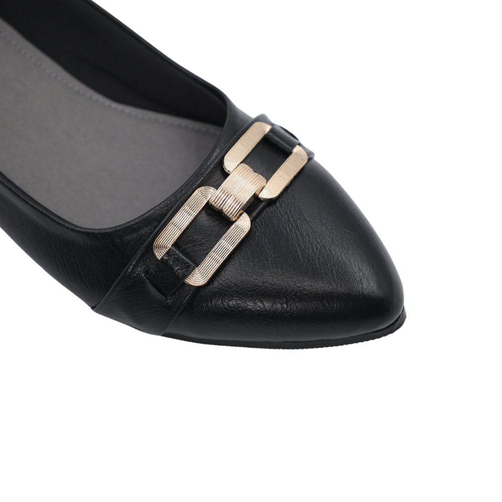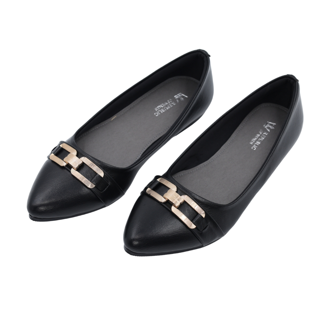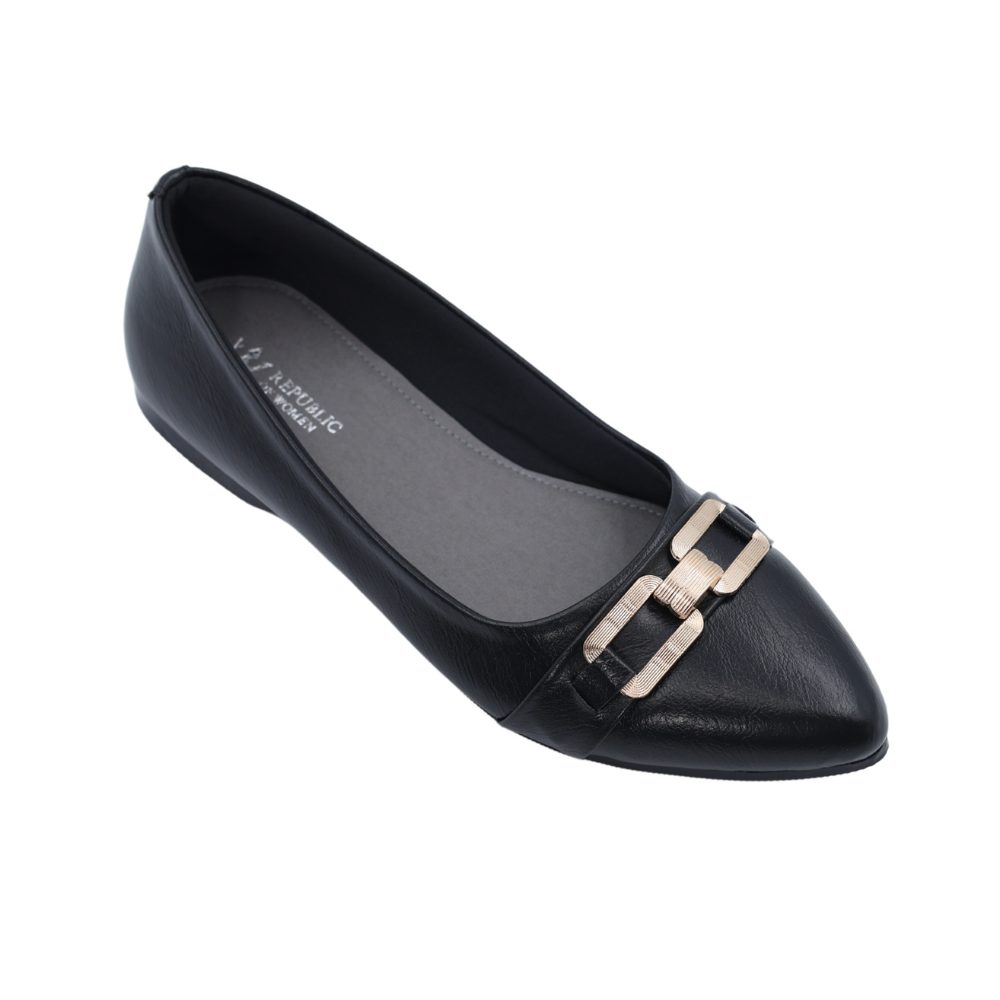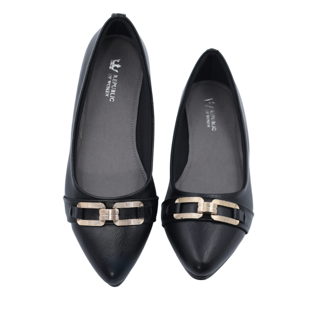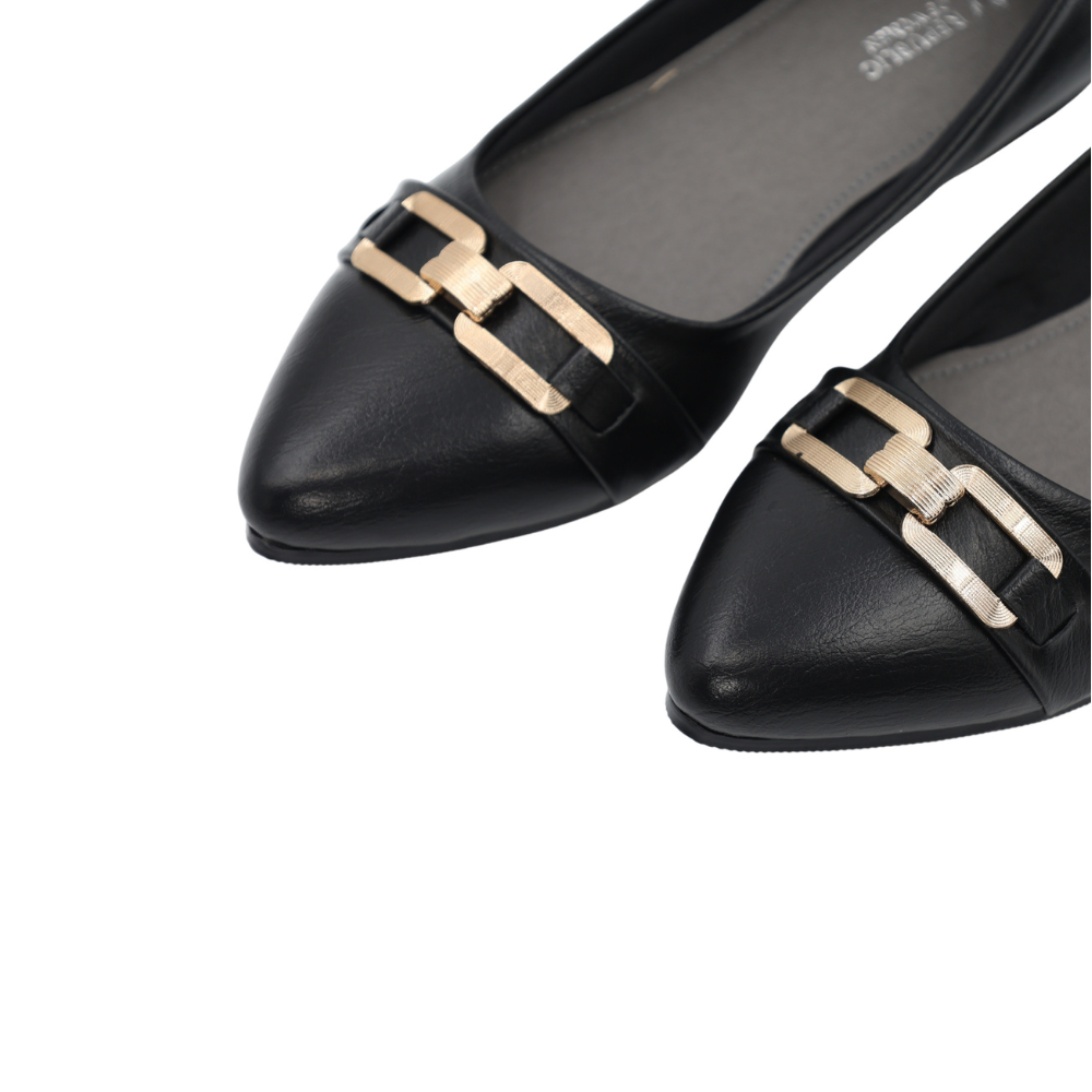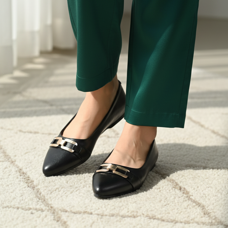 Unleash your inner monarch with these sleek black flats, crafted for the woman who owns every room she enters. Your throne awaits, queen.