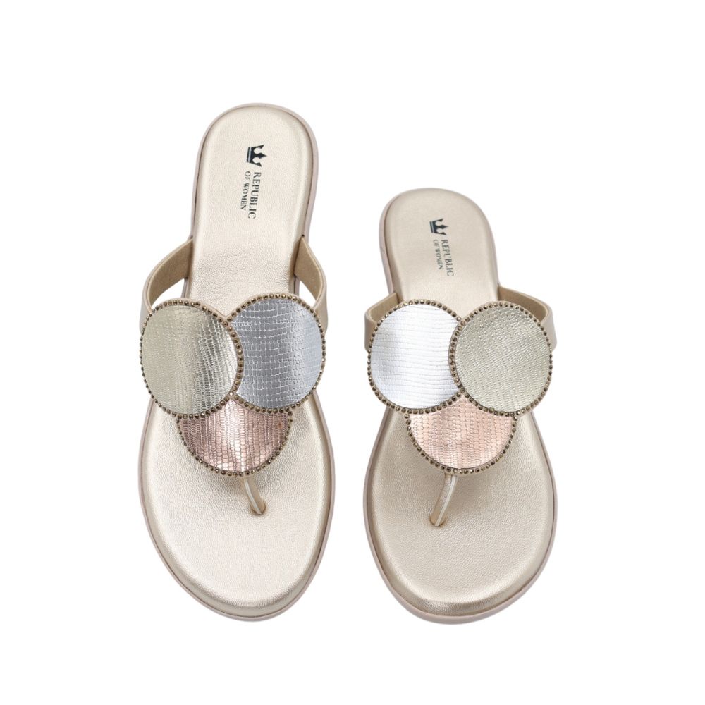 Take your royal strolls to new heights of comfort and style. These chic rose gold chappals are your crowning glory for laid-back luxury, perfect for reigning by the poolside or commanding the boardwalk.