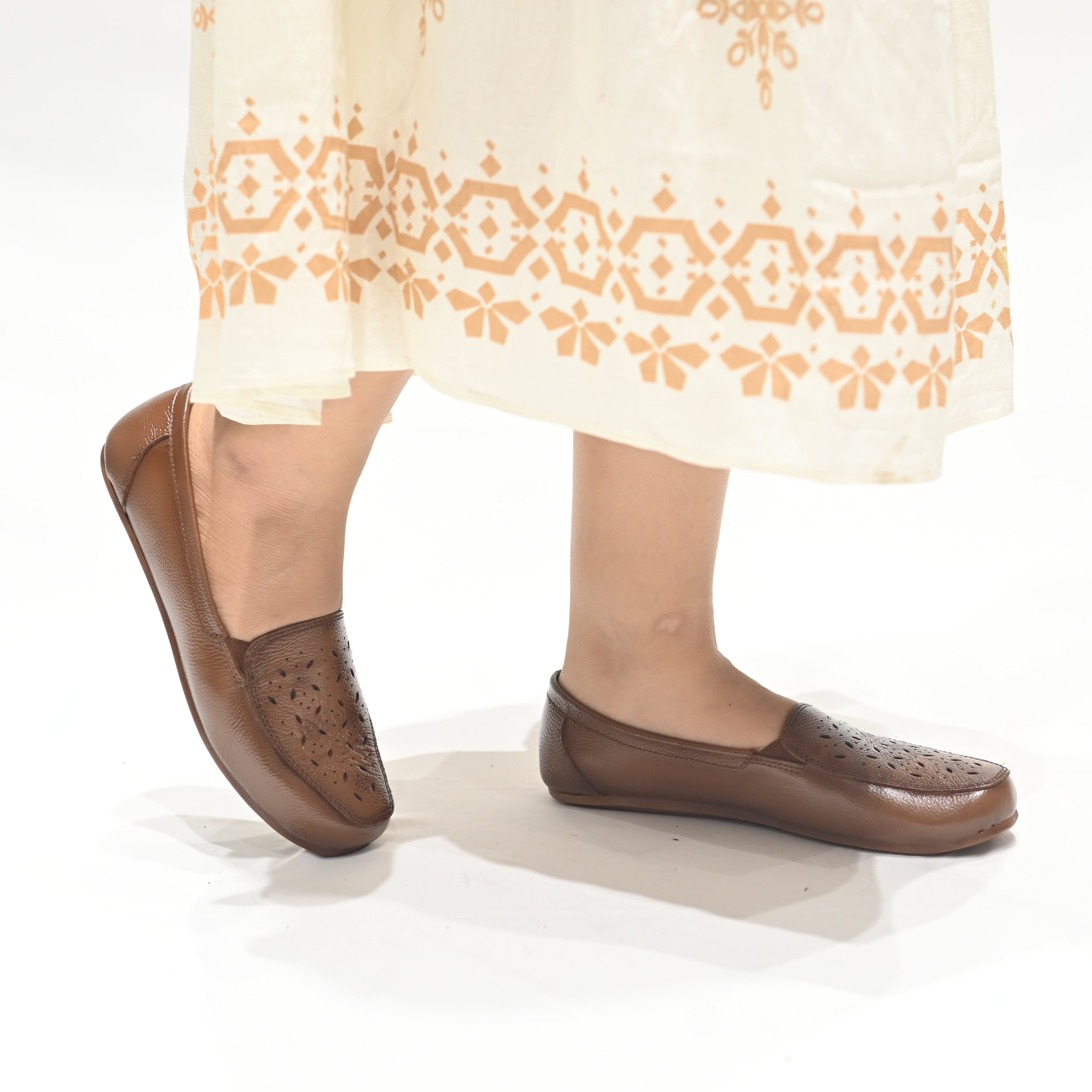 Crafted in a rich rust tone with an all-over textured pattern, these leather bellies whisper confidence with every step. Sleek, simple, and totally versatile, they pair effortlessly with office formals or Sunday casuals. The soft leather upper hugs your feet, while the TPR sole keeps things comfy from 9 to wine.